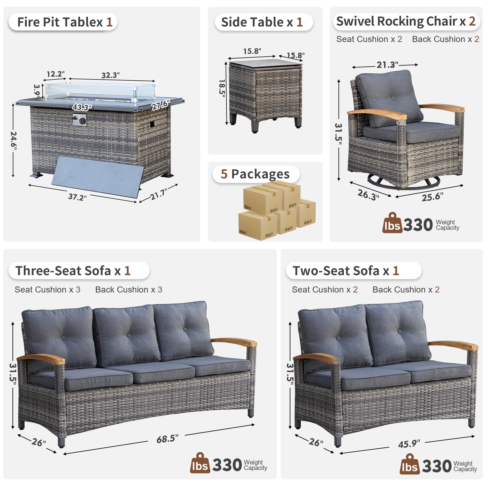 6 Pieces Patio Furniture Sets with Fire Pit Table, Outdoor Rattan Furniture Conversation Sets (YK-6601)