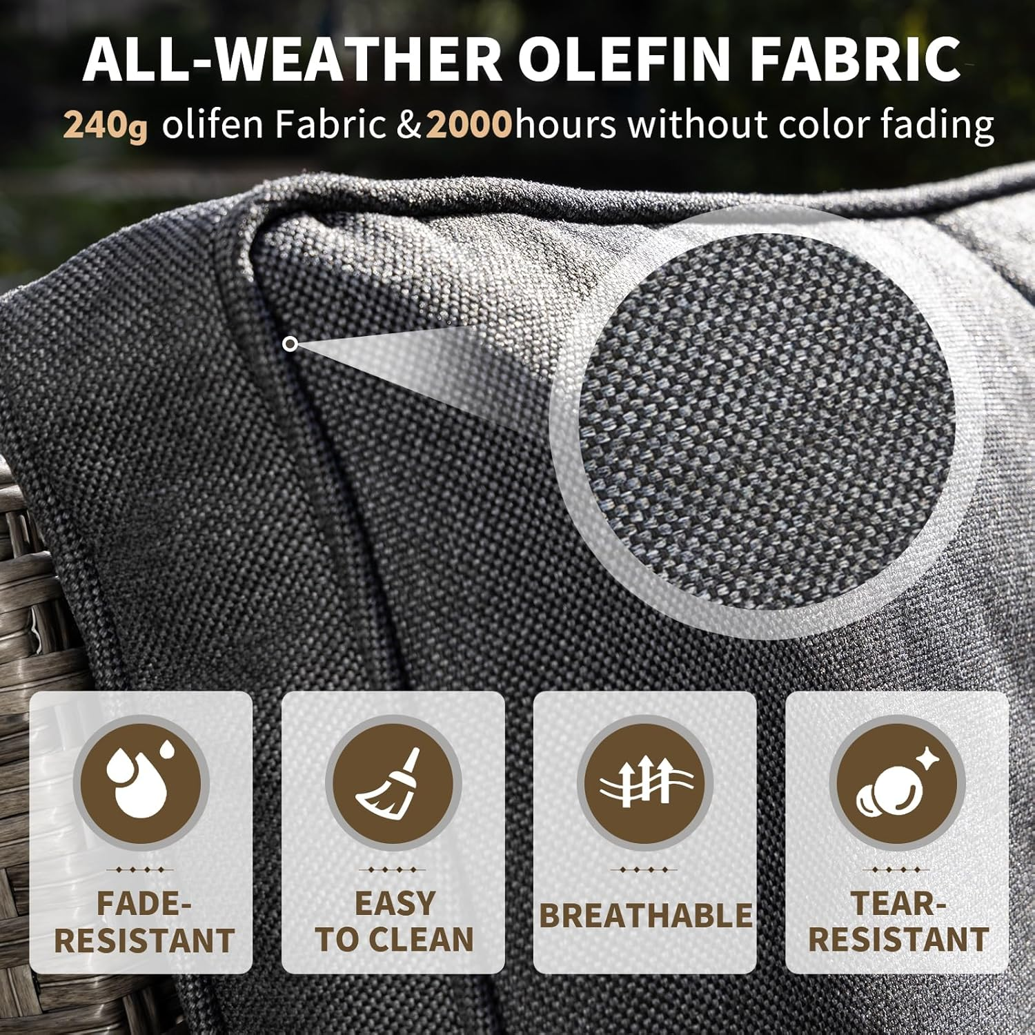 Each armchair features a steel inner frame wrapped in weather-resistant PE wicker, offering both style and durability. Swivel-action chairs perform a 360° spin and gentle rocking motion, while the included water- and UV-resistant cushions provide comfort and support. We love that the cushion covers are removable and machine-washable, making maintenance a breeze.