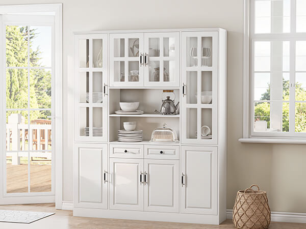 Strong & Sturdy: Constructed of high-grade certified manufactured wood and premium hardware, this kitchen hutch cabinet features superior sturdiness and long-lasting durability allowing it to hold up to 500 lbs.