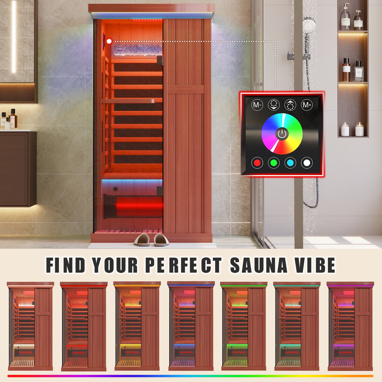Compared with traditional old-fashioned saunas, SAUNAERA has the most advanced full-spectrum heating technology, and you can freely set far, near, and mid-infrared. We have 7 colors of ambient lighting with multiple adjustment modes. Create a modern, stylish sauna corner for your home.