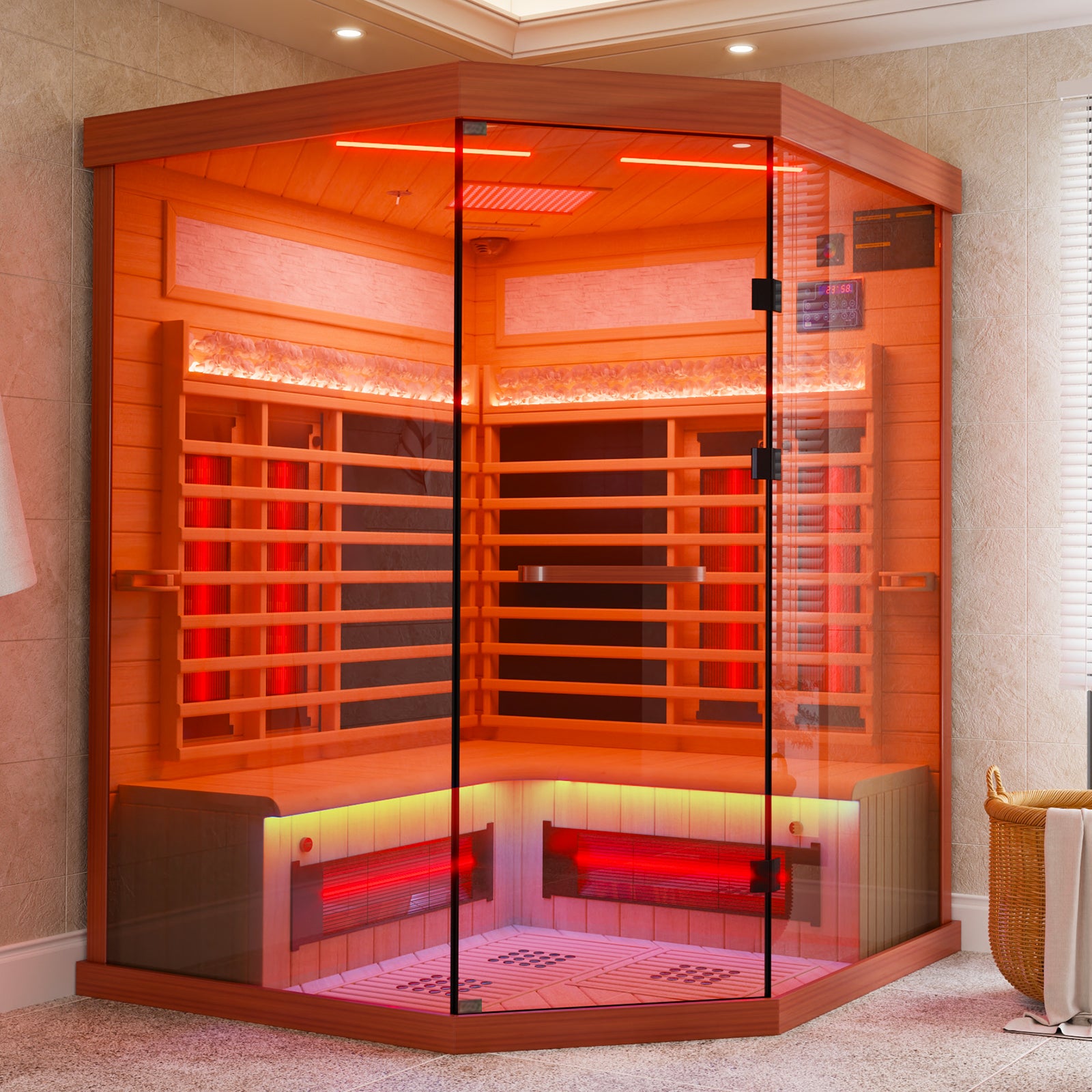 - Far, near and mid-infrared full-spectrum sauna.